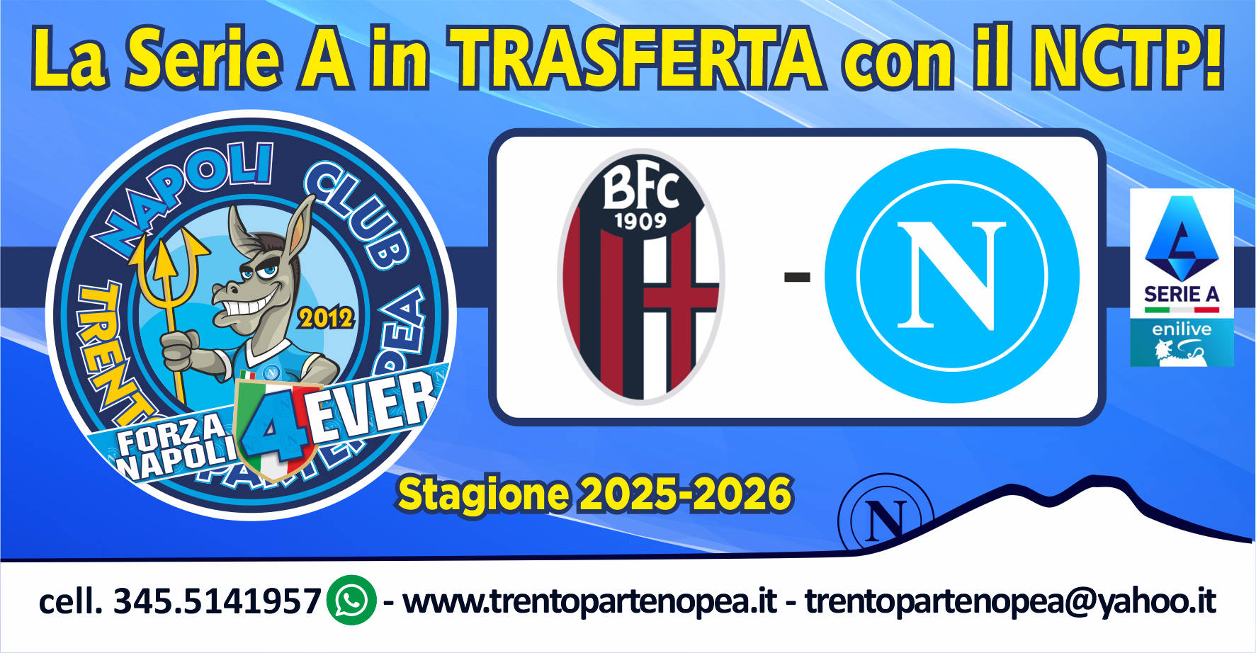 Il Napoli Club Trento Partenopea comunica che sono APERTE le PRENOTAZIONI per la Trasferta a Bologna di Domenica 09/11 alle ore 15.00