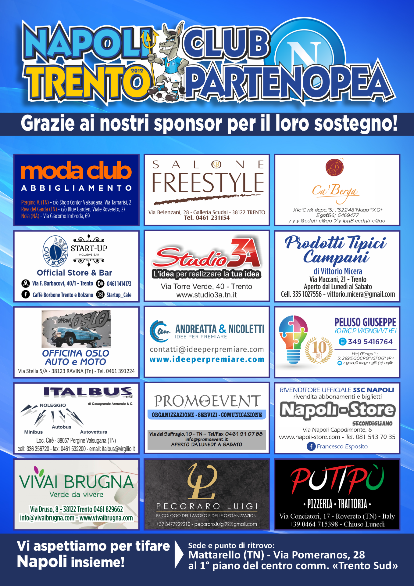 Tutti gli SCONTI e le PROMOZIONI sotto elencate saranno valide SOLO per i Tesserati del NAPOLI CLUB TRENTO PARTENOPEA per la Stagione 2025/2026