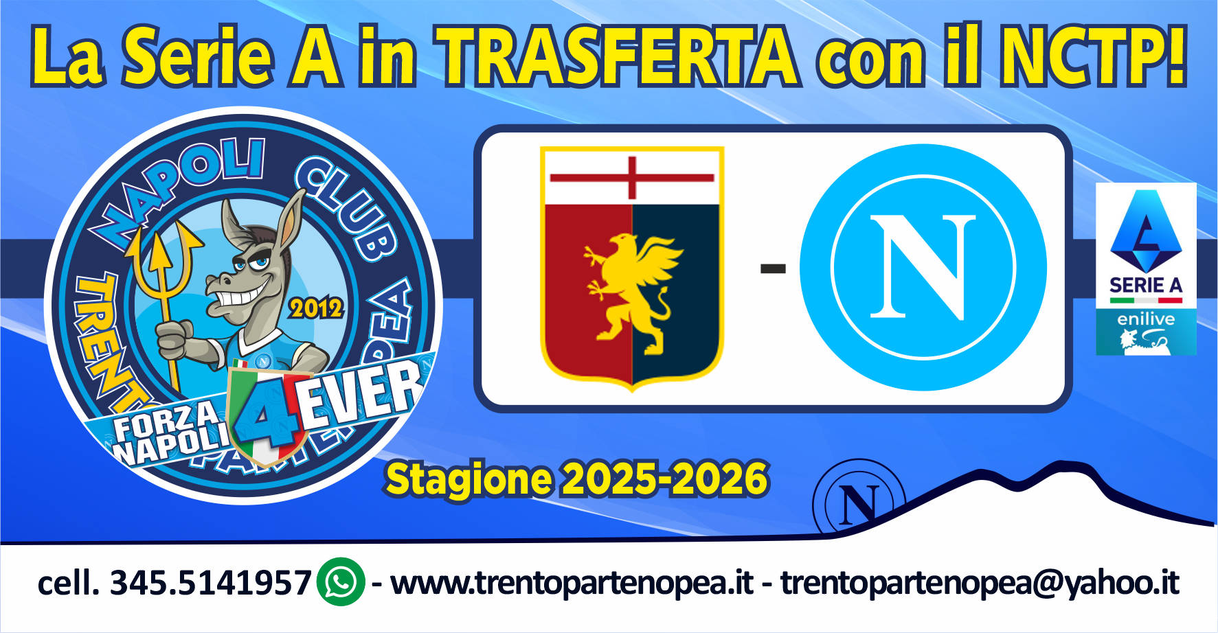 Il Napoli Club Trento Partenopea comunica che sono APERTE le PRENOTAZIONI per la Trasferta a Genova contro il Genoa di Sabato 07/02 alle ore 18.00