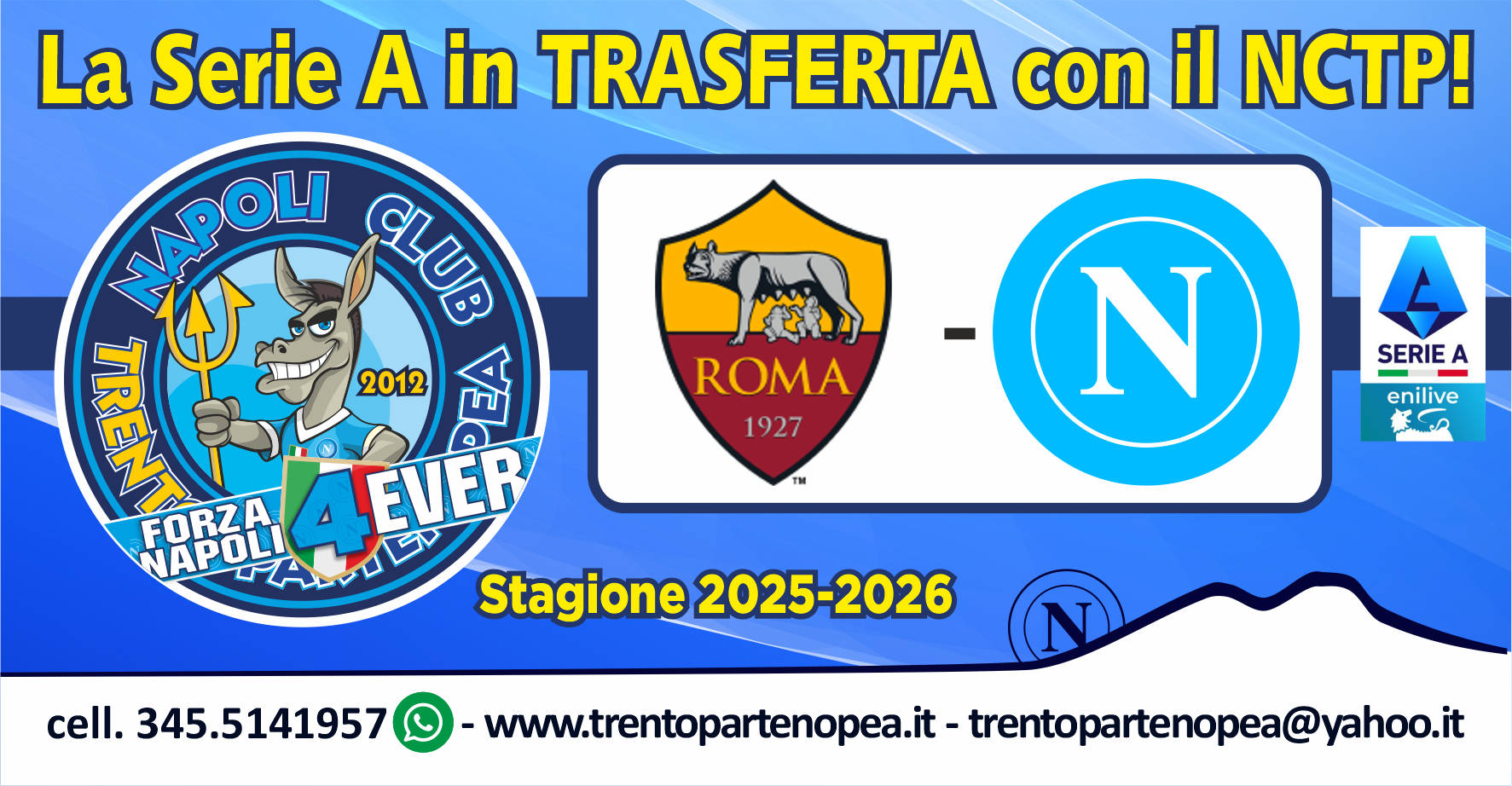 Il Napoli Club Trento Partenopea comunica che sono APERTE le PRENOTAZIONI per la Trasferta a Roma di Domenica 30/11 alle ore 20.45