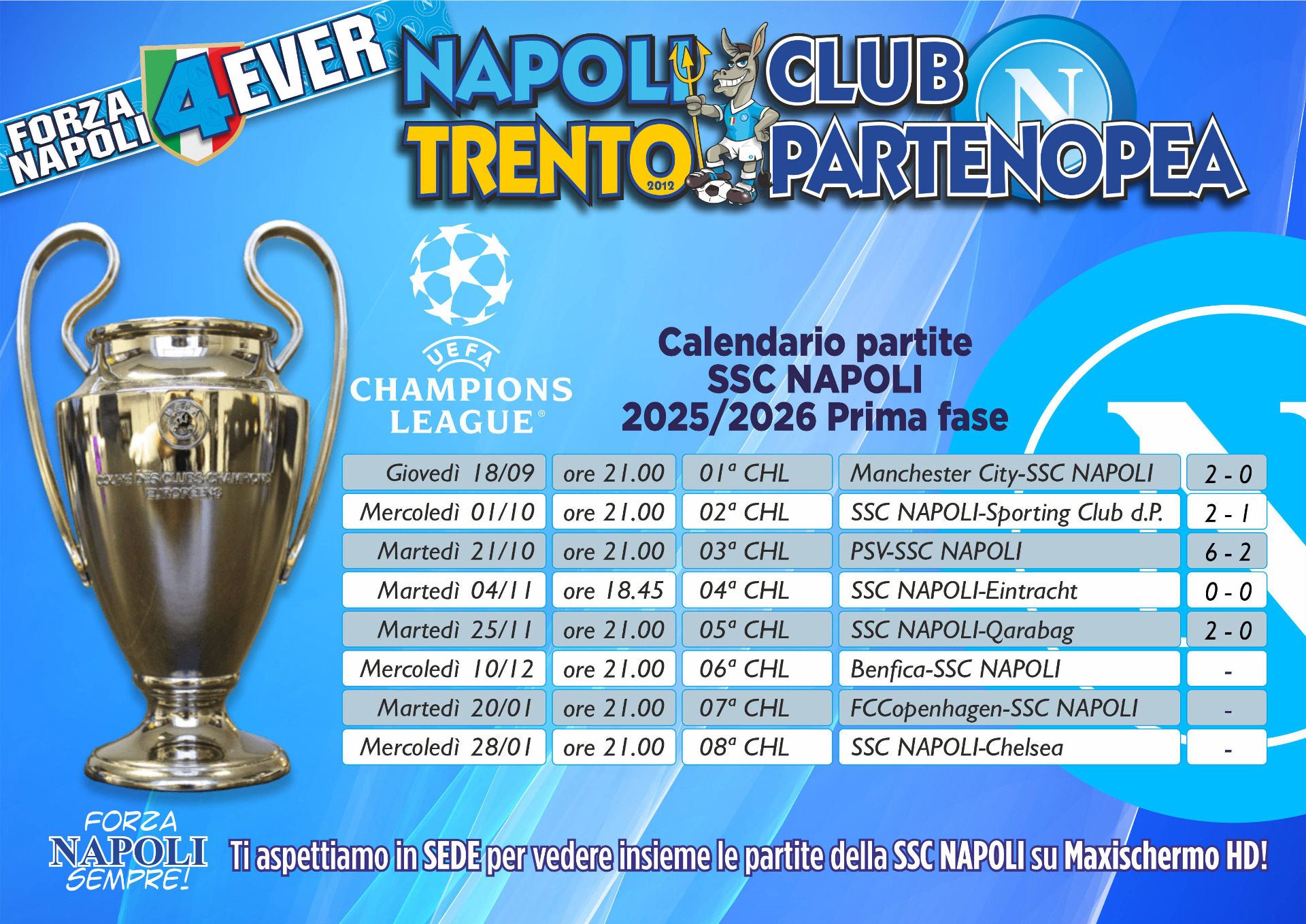 Prenotazione riservata ai SOCI del Napoli Club Trento Partenopea della Stagione 2025/2026.